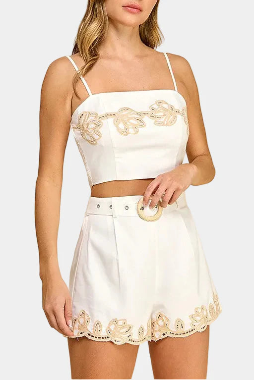 Belle Embroidered Sleeveless Crop Top and Skirt Set