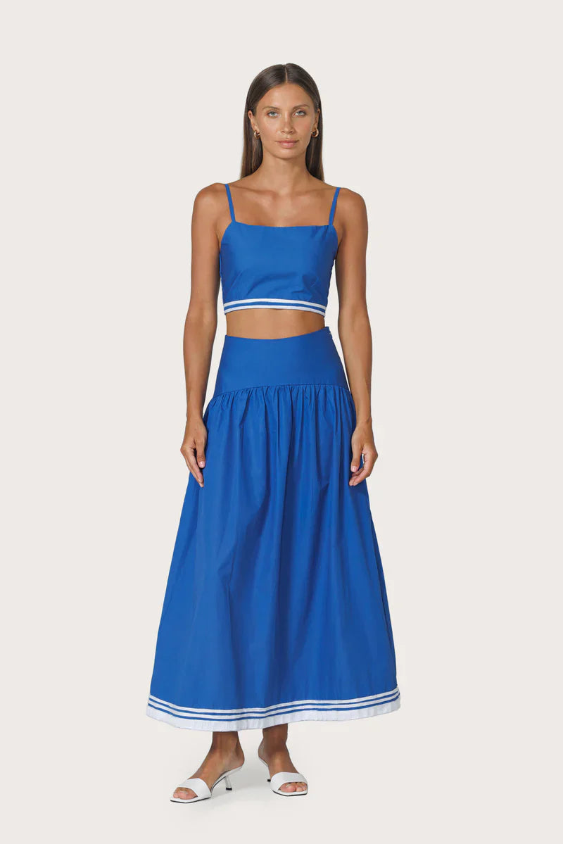 Blythe Embroidery Top & Midi Skirt Set in Navy