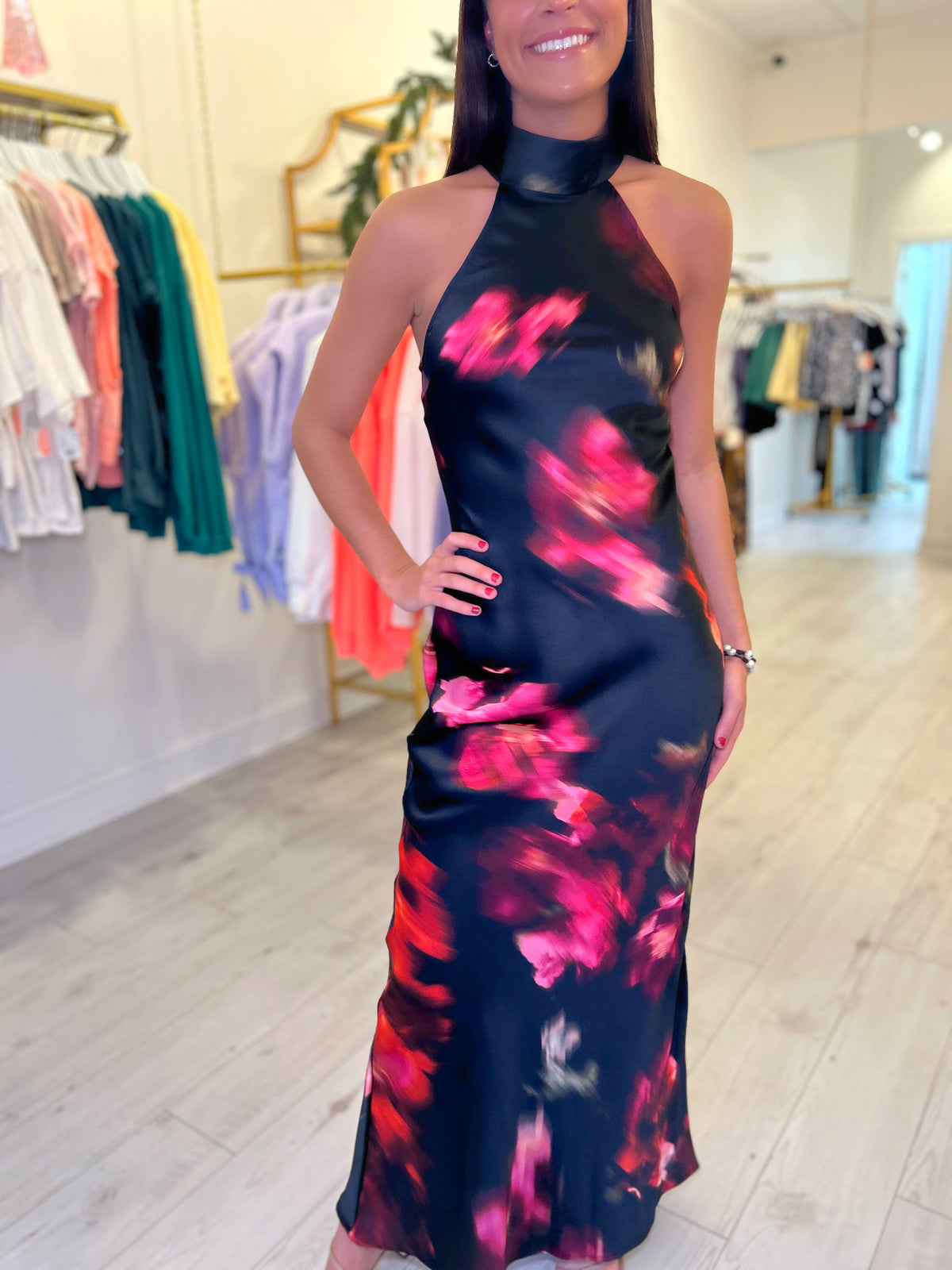 AFRM Billie Turtleneck Maxi in Aqua Animal
