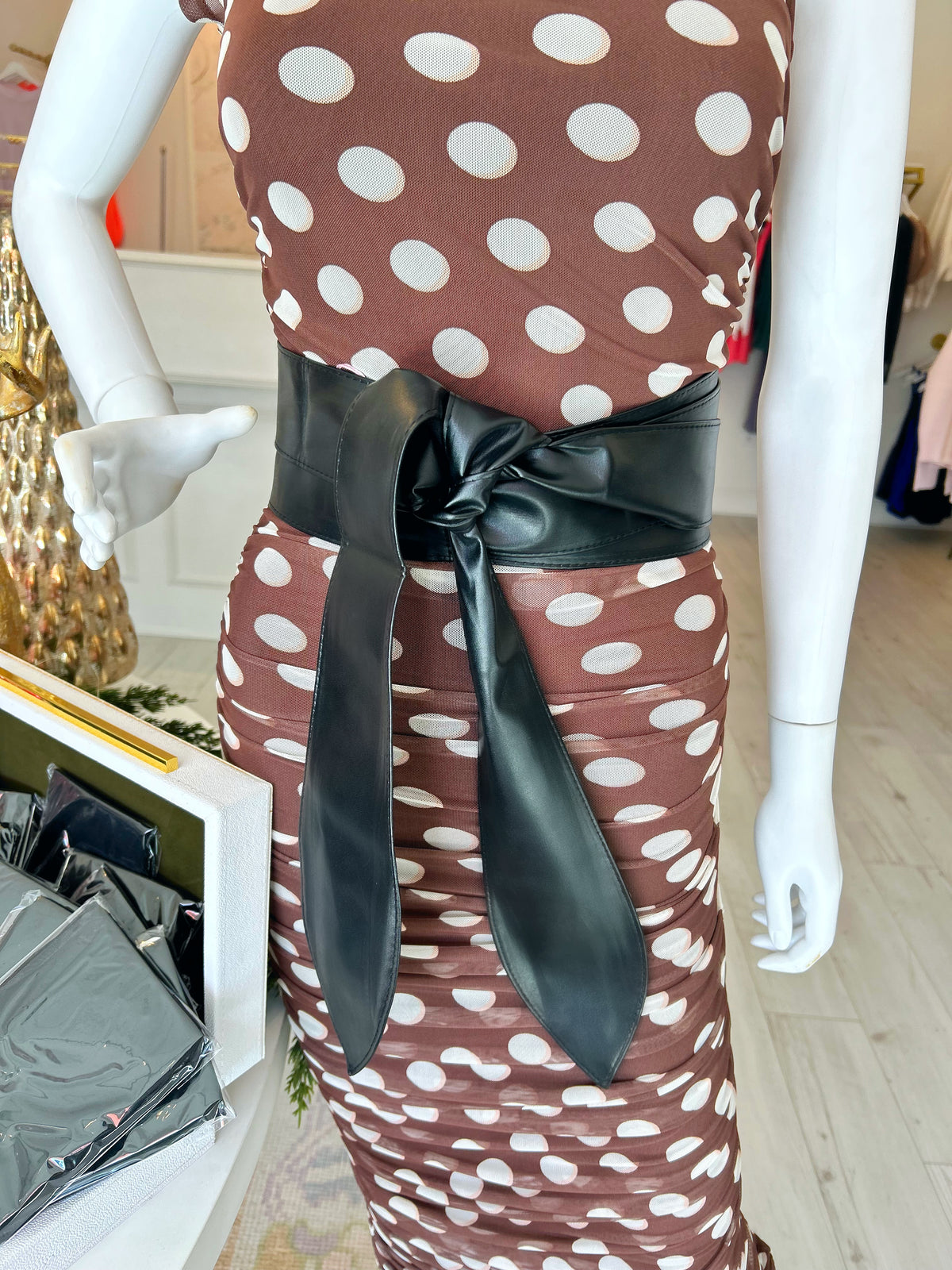 AFRM Hazel Dress in Chocolate Halo Dot